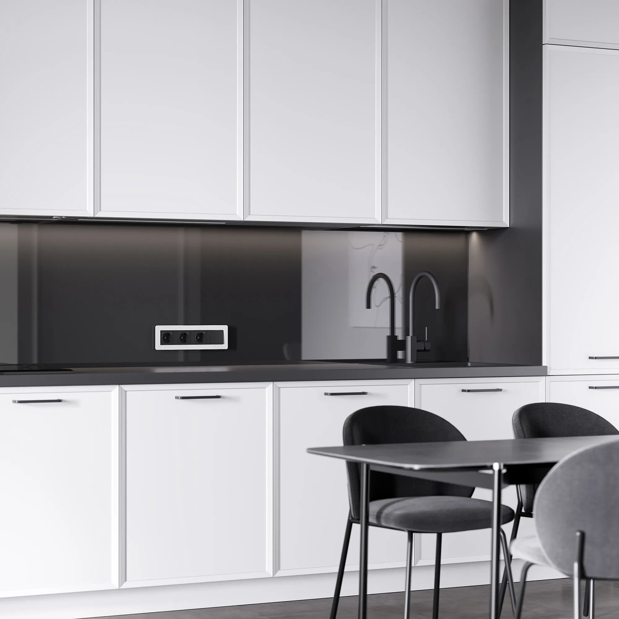 Коллекция Split переосмысливает привычные электроустановочные изделия, превращая их в элементы современного декора. Благодаря продуманному сочетанию цветов, форм и тактильных ощущений, рамка белый/чёрный становится не просто обрамлением, а визуальным фокусом на стене.